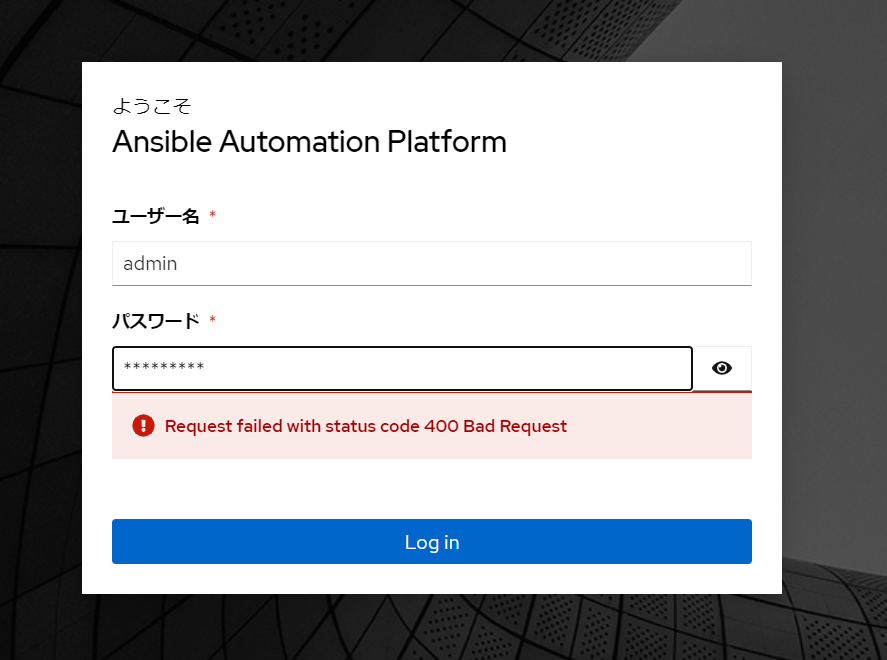 ユーザーはadminでパスワードはautomationedacontroller_admin_passwordの値になります。
